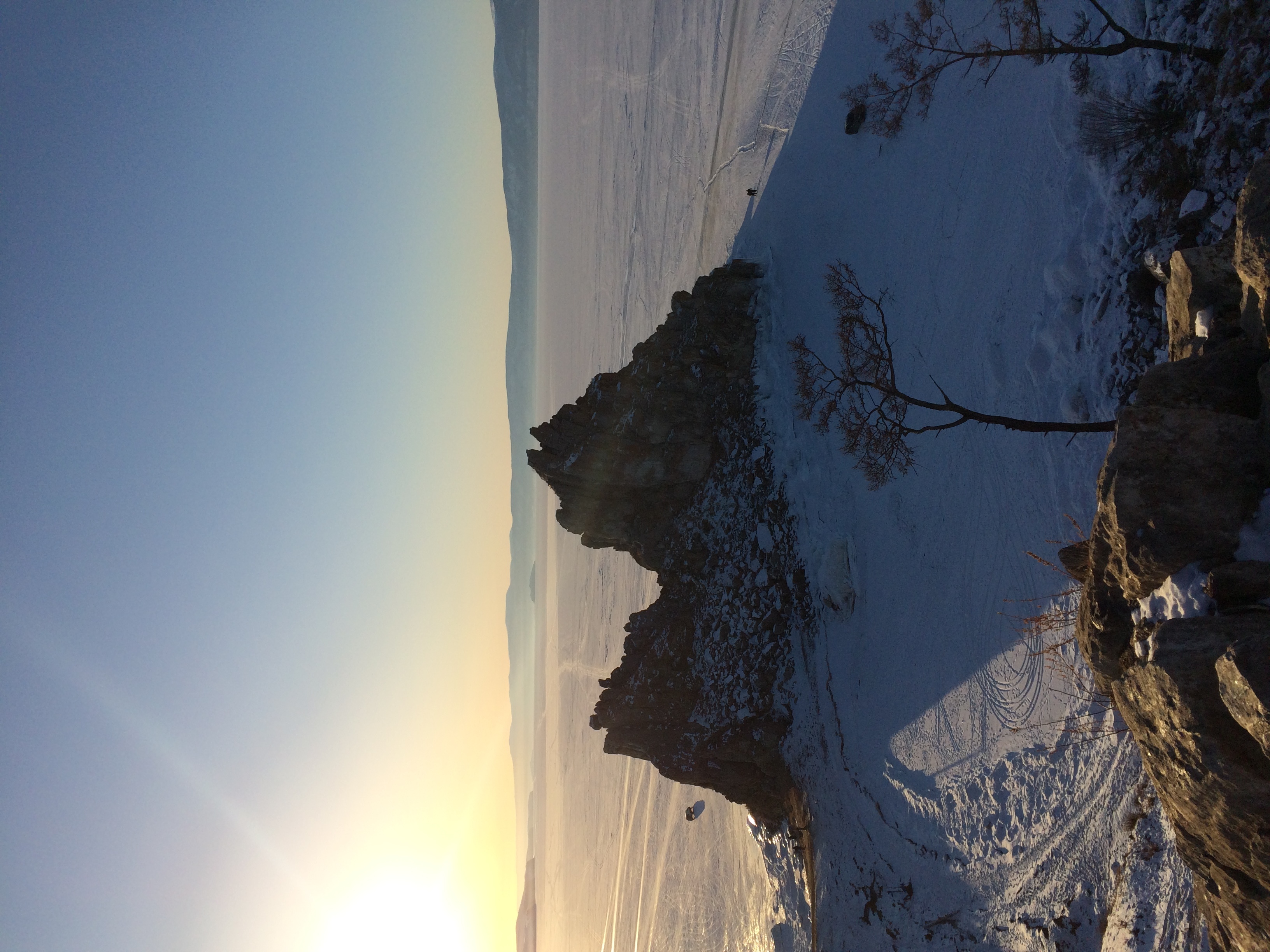 На переправе мы встречаемся с зимним Байкалом, здесь он совсем иной, чем в Листвянке – ощущается мощь, красивые пейзажи и будоражащий восторг! Двигаемся дальше, едем по острову Ольхон до посёлка Хужир. Размещаемся в отеле.