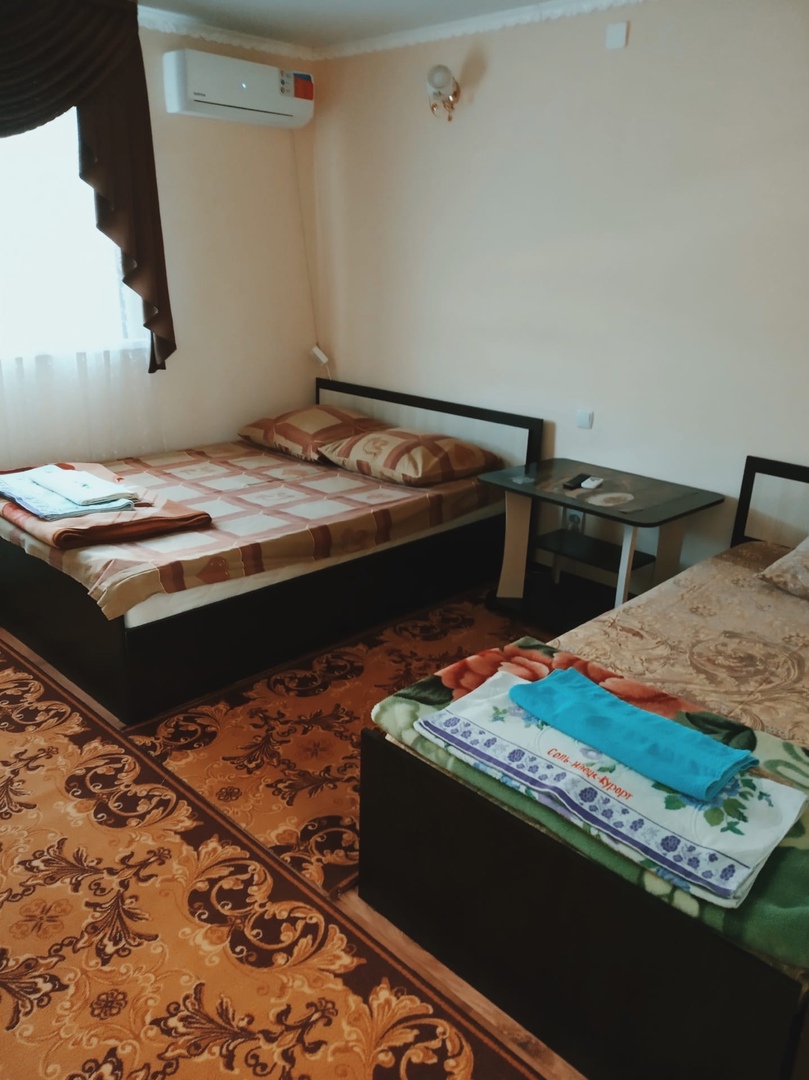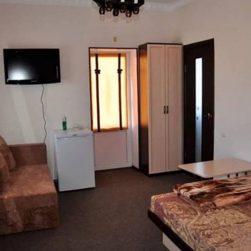 1-2-3-х местные номера стандарт с отдельным входом (одноэтажный корпус): две односпальные кровати, двуспальный диван, ТВ, холодильник, сплит система, шкаф, тумбочки, зеркало, санузел с душем, полотенце.